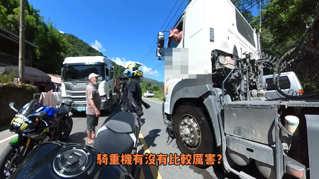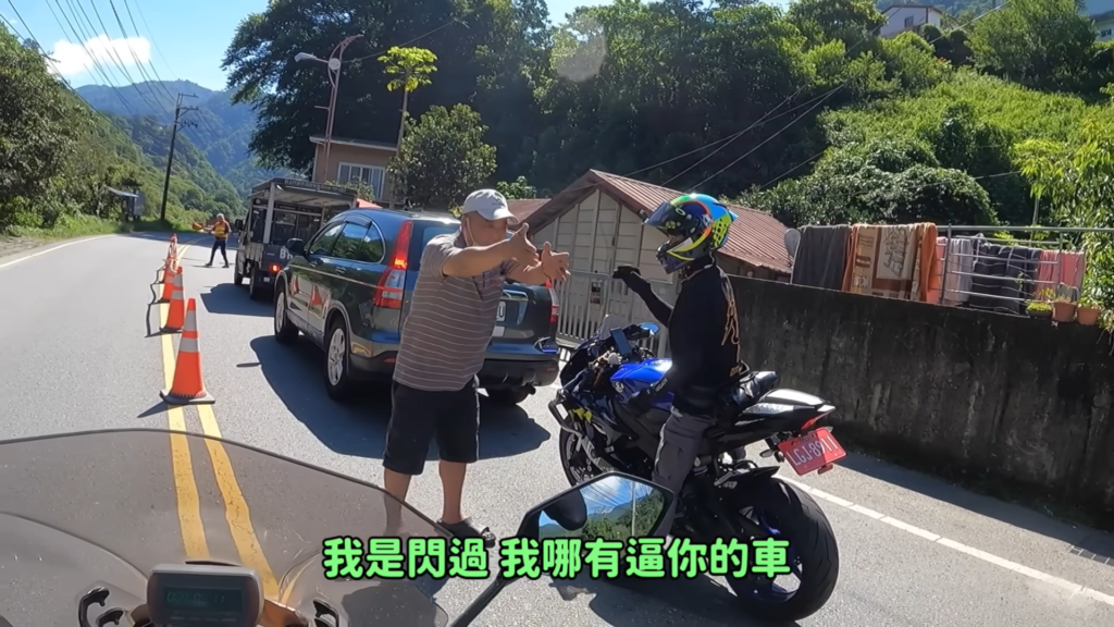 直到前方來到管制站之後,砂石車駕駛下車與儒哥同行友人理論,不斷強調他的行為只是閃過騎士,並非逼車行為,爭論到一半對向另一輛砂石車駕駛又參戰,不清楚前面發生的過程,卻直接對著儒哥一行人說道騎重機有比較厲害?爭吵之後警方介入處理,表示請儒哥回程後檢舉處理,避免現場道路阻塞。而險些被捲入車輪下的年輕女騎士發現車輛有輕微損傷,只是事發當下差點以為自己會被捲進砂石車車底,儒哥本人也相當憤怒駕駛的行為。