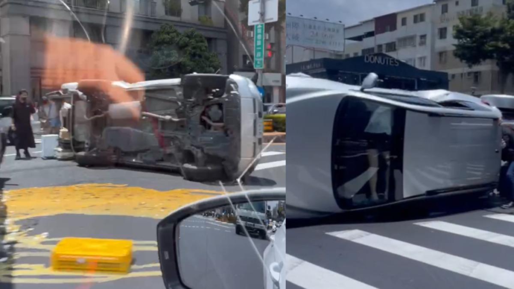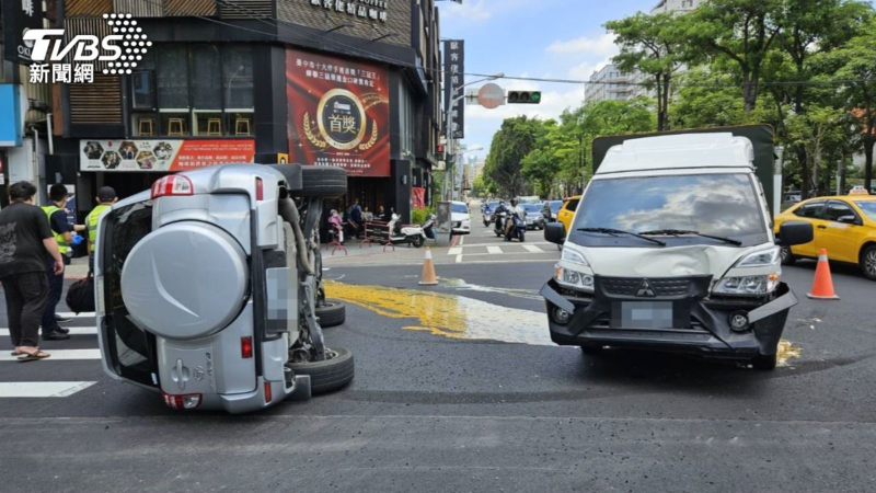 而事故導致許女擦傷、許女車上3名乘客手、腳擦傷,車輛90度左側翻;至於陳男擦傷,陳男車上女乘客則手腳擦挫傷,送往中國醫就醫,陳男車輛上的雞蛋因受到撞擊碎一地,馬路上沾著大量蛋黃。
