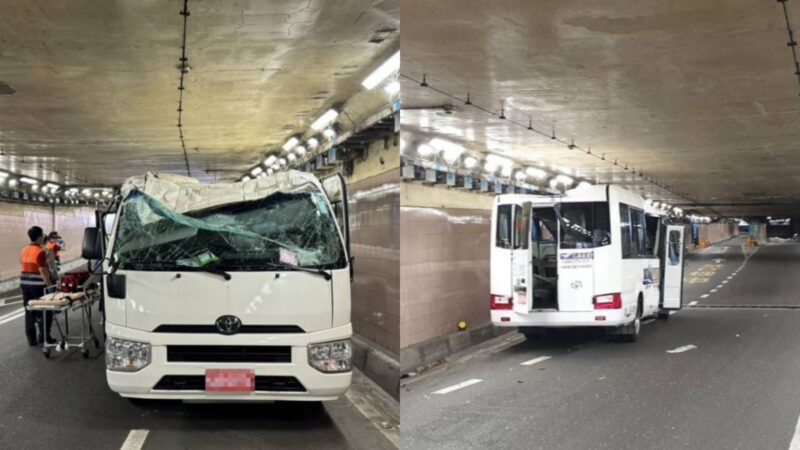 今日 (9月9日) 上午驚傳一起小巴士自撞地下道的車禍意外。一輛小巴士疑似未注意車身高度,駛入台北市基隆路之地下道期間,因為巴士車高超過地下道高度,導致巴士車頂當場撞爛,造成車輛損毀、擋風玻璃破損以及車上數名乘客受傷,掉落的地下道上方的防撞措施還波及後方行駛的機車騎士。警方到場後隨即將受傷乘員送醫,全線封閉地下道,並將調查後續事故發生原因。
