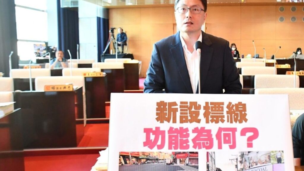 大里、霧峰區的議員林德宇,於台中市議會提出質詢,原本大里區大明路口,是禁止臨時停車的紅線,但是不少市民發現,最新的狀況都是往外推,紅線跟建築間劃設有白槽化線,不免令人好奇,到底是什麼線?最主要的功能是什麼?