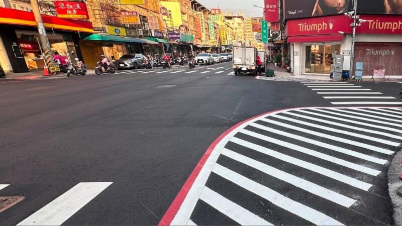 同時葉昭甫進一步強調,槽化線的概念是要讓前、後端道路上順接到街角口的地方,使道路不要突然間到路口的地方又變得寬闊,槽化線畫設就是要引導車行動線,不能像以前切西瓜,就要稍微再繞出去一點。
