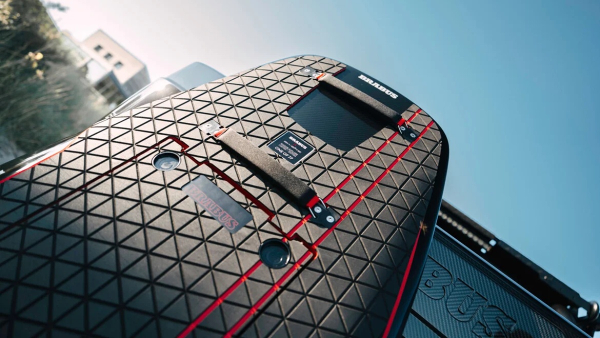 以Brabus XLP 800 Adventure為設計靈感,這塊電動噴射衝浪板不管是結構或板身都是以碳纖維材質打造,不只有助於強化剛性與抗衝擊性,重量也控制在21公斤 (含電池約40公斤)。板面上的軟質踏墊則是加入Brabus訂製內裝特有的菱格紋路,再輔以紅色飾條點綴,板底帶有搶眼的Brabus字樣,由Awake設計的全新碳纖維尾鰭搭配 W型船體設計,還可以在高速衝浪時提供強勁動力、提升穩定性,在可控範圍內帶來更加流暢的操控體驗。