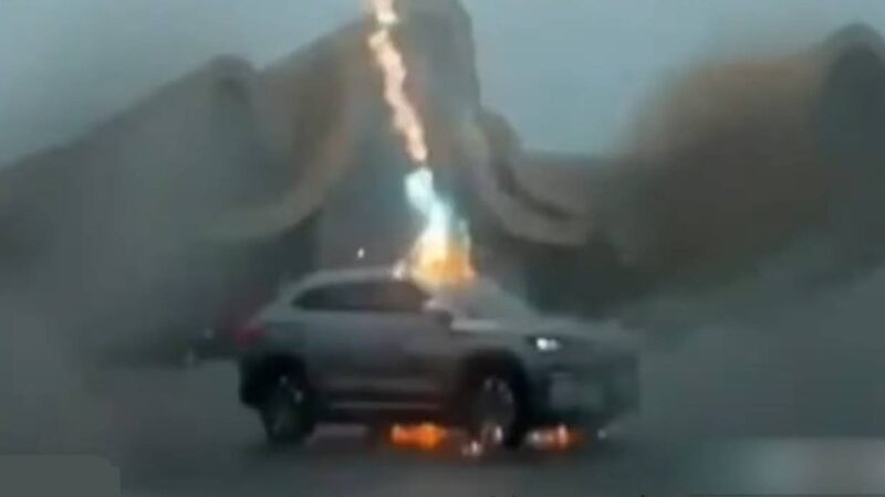 據目擊者描述,事發當時天色陰沉,一道閃電直接擊中該比亞迪的宋Plus EV,緊接著第二、第三道雷電接連落下,伴隨明顯震感與火光。車輛當場停在原地,但車內乘客全數平安。廣西科技館人員解釋,因為汽車金屬車體形成了「法拉第籠」效應,雷電電流沿車身再透過輪胎導入地面,車內人員相對安全。