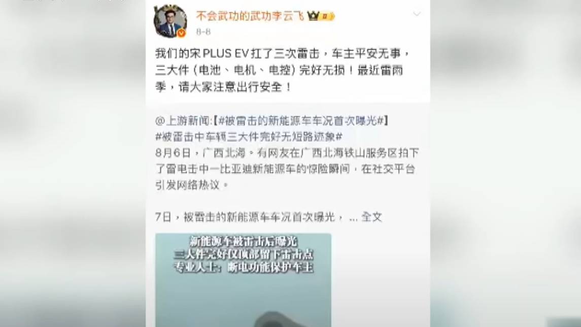 三連擊閃電BYD,乘客安然無恙