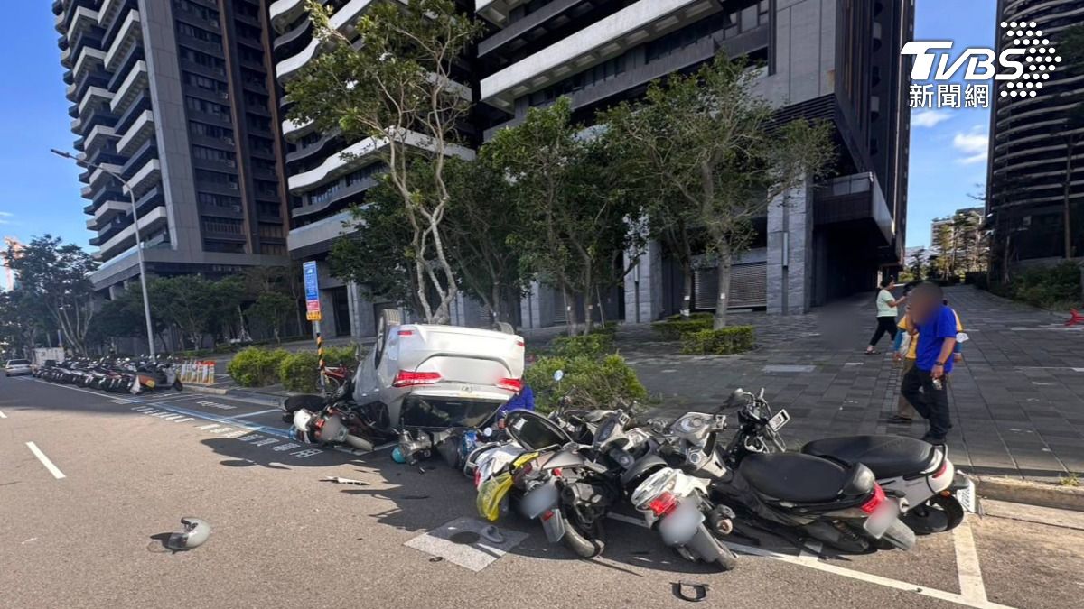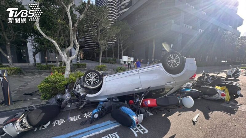 淡水分局指出,今日上午7點12分接獲通報,一名謝姓男子駕駛小客車行經新市三路二段297號前時,因不明原因失控撞擊停放在路邊的多輛機車,導致車輛當場翻覆。畫面中顯示,小客車當時雖速度不快,但卻硬生生撞上整排機車,隨後呈現「烏龜翻」狀態,將多輛機車壓在下方。