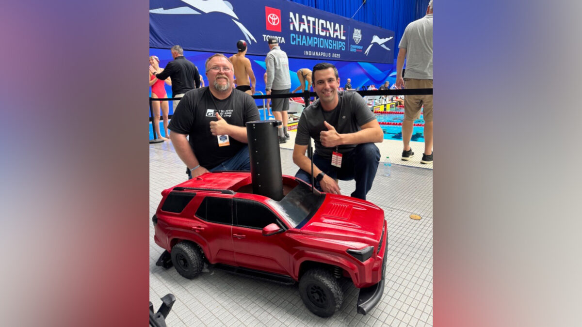 近日在美國舉辦的Toyota全國游泳錦標賽上,豐田帶來了這輛等比例縮小的4Runner模型車。不過,有別於一般常見的模型樣品,這輛模型其實是以3D列印技術製作而成,比照真實車輛的細節,透過電腦程式還原,並適當地拉伸、調整,使其能夠符合行動攝影裝置大小,在現場擔起活動拍攝的任務。