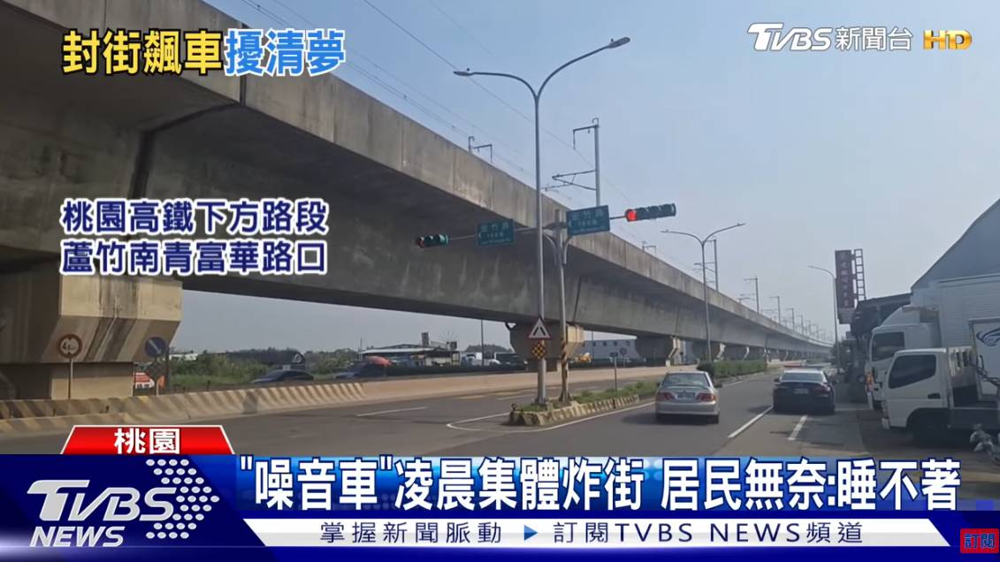 今年4月初,桃園市蘆竹區南青路高鐵橋下發生集體飆車事件。一群騎士騎乘改裝機車逆向佔用車道,且未戴安全帽、未掛車牌及違規改管製造巨大噪音,嚴重擾亂交通與居民安寧。警方循線查獲5人,依《刑法》第185條之3「妨害公眾往來安全罪」提起公訴,最高可處5年徒刑、拘役或併科50萬元以下罰金。