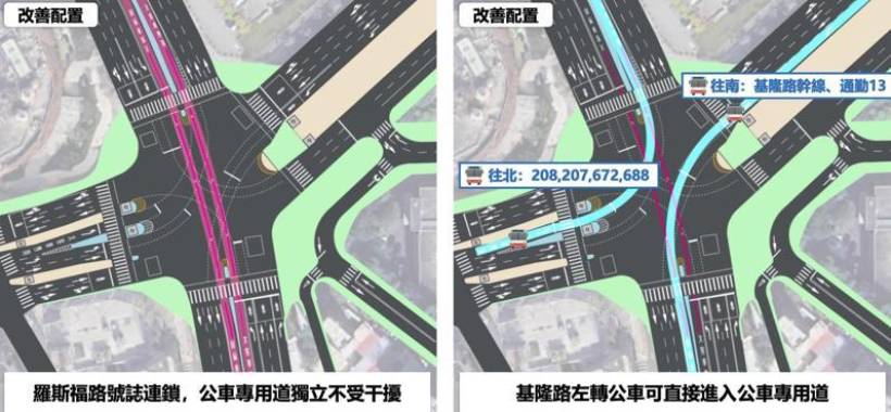 市府認為,若改為正交路口,號誌控制能有效分流,參考其他路口案例,事故潛在風險可望降低六成以上。此外,公車專用道將移至平面,並設置專屬車道,市府承諾透過號誌調整,可讓大部分公車順利通過,平均停等時間不會超過30秒。行人空間也將放大,步行距離可縮短23%。