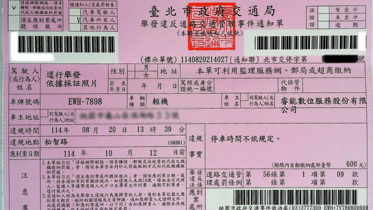 當事人在Threads平台分享,在8月20日下午1時許,他騎乘共享機車於台北市信義區松智路找到一個停車格,停好車後以為萬事大吉,沒想到幾天後收到一張600元的罰單,違規原因寫著「停車時間不依規定」。他事後才發現該停車格是「機車限時停車位」,有明確的停車時間限制。他氣憤表示「那段時間不能停車,停車格畫了可以拿來幹嘛?」,引發網友議論紛紛。