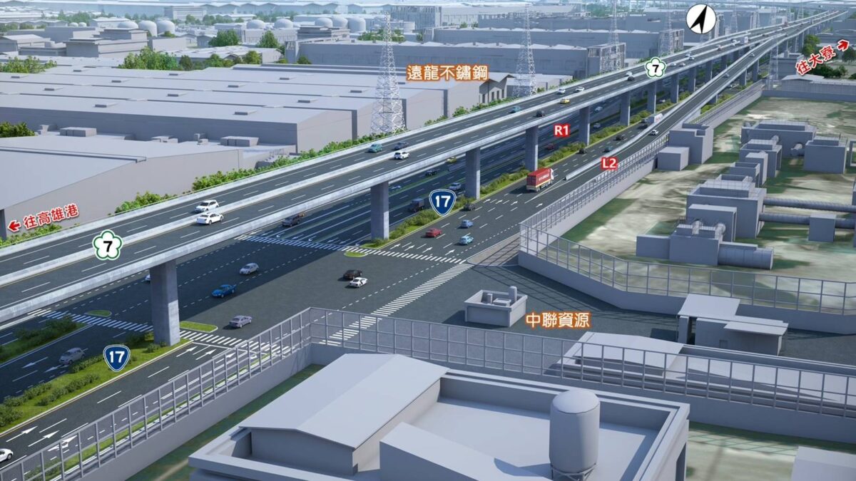 國道7號北起銜接國道10號仁武系統交流道,向南經大社、仁武、鳥松、大寮、鳳山、小港,終點連至林園臨海工業區南星路,沿線規劃設置多個交流道。此路廊不僅是貨櫃中心的主要聯外幹道,更串聯和發、大發、林園等工業區,以及半導體S廊帶、高雄科學園區與仁武產業園區,將港口、工業區與科學園區緊密結合,打造南部完整的供應鏈物流網絡。