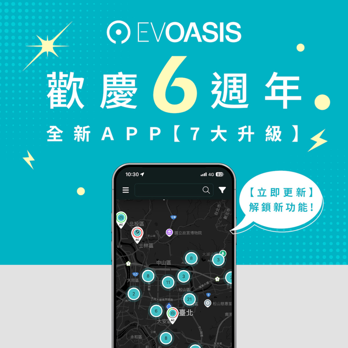 Evoasis迎來六週年,宣布APP全新升級,並同步推出雙週末「離峰6.5 元/度」限時回饋,適用期間為9/13–9/14、9/20–9/21,活動覆蓋 北、中、南60個以上之超級綠洲快充站。本次APP升級聚焦「找站 → 到站 → 充電結束」全流程,強化站點地圖、即時排隊資訊、導航與分時費率顯示,並優化充電紀錄,提供更直覺、更安心的充電體驗。