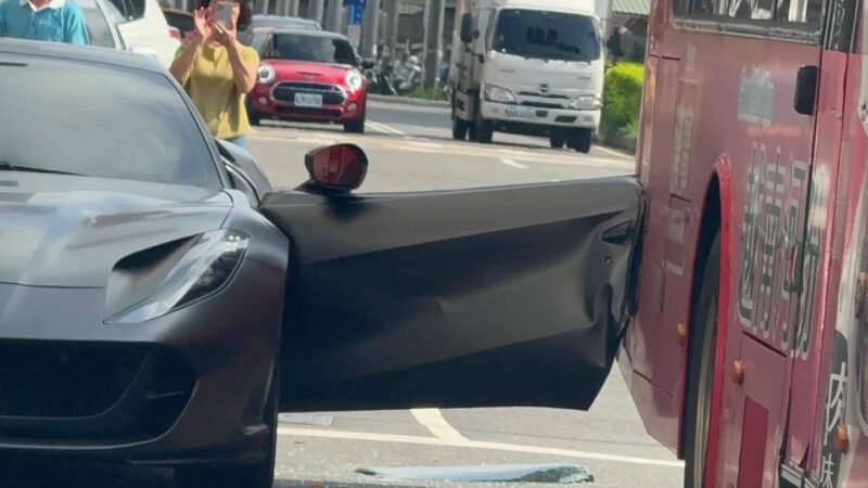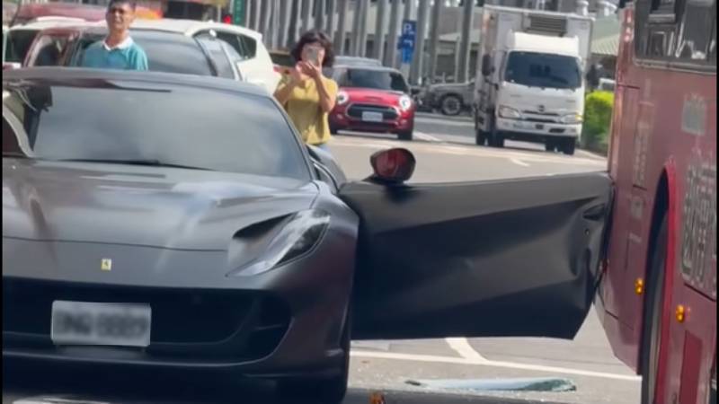 台中市西屯區9月25日下午發生一起驚險事故,一名46歲陳姓男子駕駛千萬級超跑Ferrari 812 Superfast,違規將車輛停放在河南路二段的「公車停靠區」。當他突然打開駕駛座車門時,恰巧有一輛公車正要進站,兩車瞬間發生碰撞,導致法拉利車門直接被撞擊變形。所幸雙方駕駛均無飲酒狀況,也沒有任何人員受傷,詳細肇事原因仍待進一步鑑定釐清。