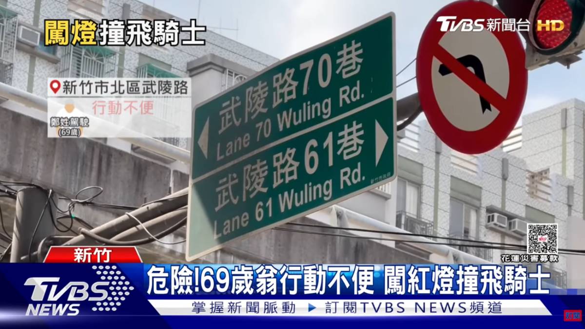 新竹市北區武陵路近日發生一起嚴重車禍。一名69歲行動不便的鄭姓駕駛闖紅燈後,衝撞一名廖姓機車騎士,導致騎士被撞飛至引擎蓋,所幸送醫後無生命危險。不過,當時鄭姓駕駛下車時必須扶著助行器,走路明顯十分吃力,引發民眾質疑其是否適合開車,掀起對高齡駕駛的擔憂。