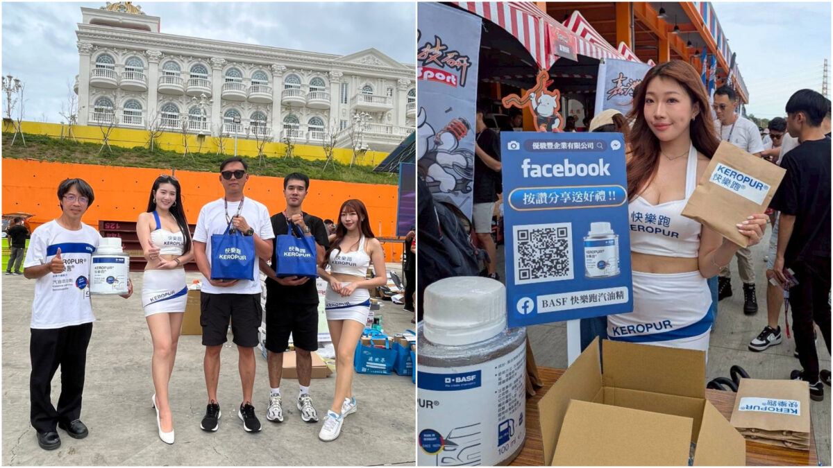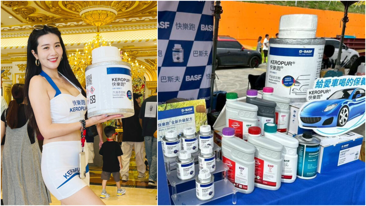 在現場頗受矚目的,就是BASF快樂跑汽油精。這款添加劑採用BASF獨家研發的清潔配方,能針對直噴與歧管引擎有效清除積碳、改善燃燒效率,並恢復油門反應。品牌技術人員現場示範正確使用方式,建議車主於加油前倒入油箱,讓燃油與添加劑充分混合,達到最佳清潔效果。