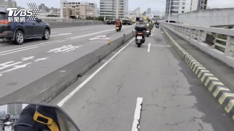 根據統計,去年6月至今年5月間,大漢橋一共發生194起交通事故,主要肇因包括未保持安全距離及違規超車。新北市議員陳世軒實地觀察指出,機車道僅能容納兩輛機車並行,高峰時段車流量龐大,騎士幾乎無轉圜空間,即便橋上限速40公里,超車行為仍屢見不鮮,安全風險居高不下,而且,現行車種分流設計不盡理想,建議拆除分隔島並改採「車速分流」,開放最外側汽車道供機車行駛。