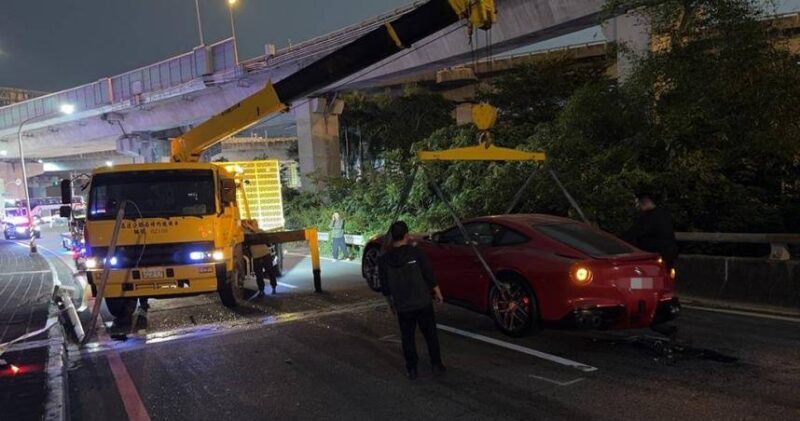 高雄市仁武區澄觀路12月5日傍晚下班尖峰時段發生一起超跑事故。一輛紅色法拉利F12行經澄觀路往榮總方向陸橋時,疑似因車輛打滑失控,自撞路旁電線桿,強大撞擊力道將電桿攔腰撞斷,倒伏在雙線道上,造成現場交通一度幾乎癱瘓。所幸49歲周姓駕駛並無大礙,酒測值為0。
