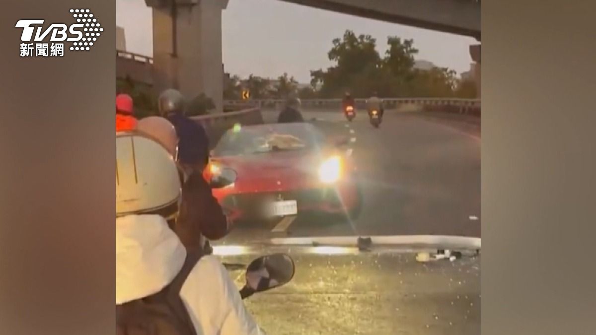 現場可見,電線桿被硬生生折斷躺在路面,法拉利前方散落大量碎片,擋風玻璃也插著疑似破損物件,事故畫面相當驚險。由於陸橋空間狹窄,車道瞬間縮減成只能讓機車通行,導致澄觀路車流大亂,往返方向皆嚴重回堵。