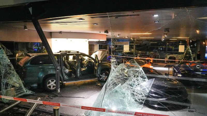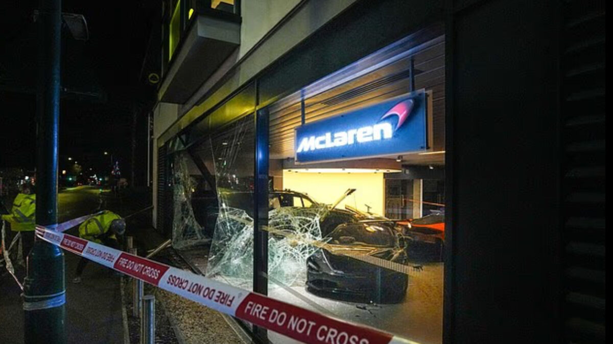 西密德蘭郡警方指出,皮卡車撞進展間後,一台價值 27 萬英鎊(約新台幣 1,120 萬元)的黑色「McLaren 750S Spider」和另一台價值 10.5 萬英鎊(約新台幣 435 萬元)的橘色「McLaren GT」嚴重受損。