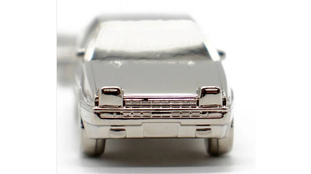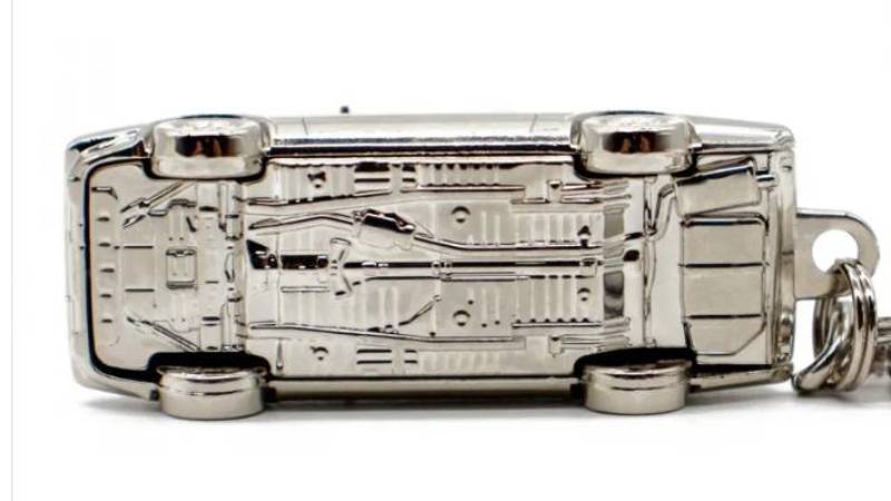 這款鑰匙圈最大特色,在於使用鋅合金壓鑄材質製作,表面再施以鍍鉻處理,不僅視覺閃耀,拿在手上的份量感更是明顯,單件重量達57公克,遠超一般鑰匙圈,質感幾乎接近小比例金屬模型。