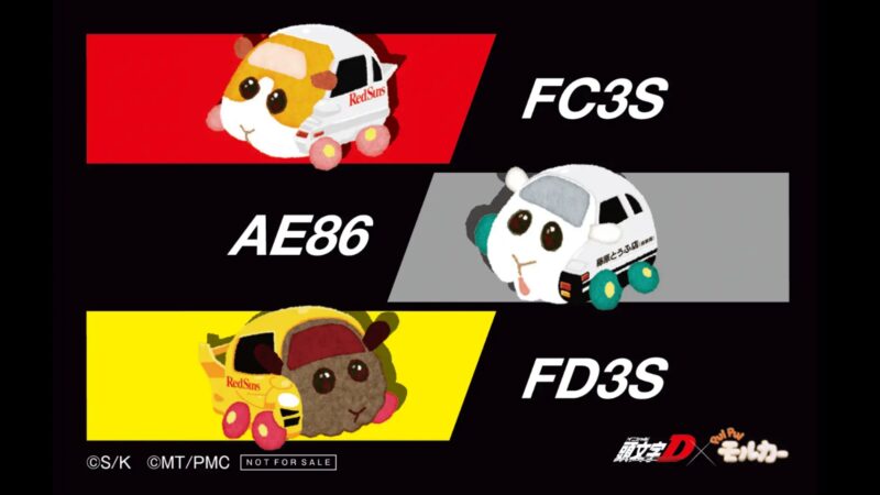 這次聯動最吸睛之處,在於《頭文字D》作品中多款代表性車款都將化身成《天竺鼠車車》的模樣登場。無論是藤原拓海所駕駛,象徵日本山道甩尾文化的AE86,或者是RX-7 FC、FD等經典轉子跑車,都以天竺鼠車車的可愛造型重新詮釋。其中AE86採用熟悉的黑白熊貓塗裝,而RX-7 FC、FD 則忠實還原RedSuns車隊的招牌貼紙元素與配色,在保有速度與競技象徵的同時,也多了一份讓人會心一笑的可愛感,形成又帥又萌的反差魅力。