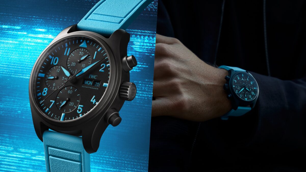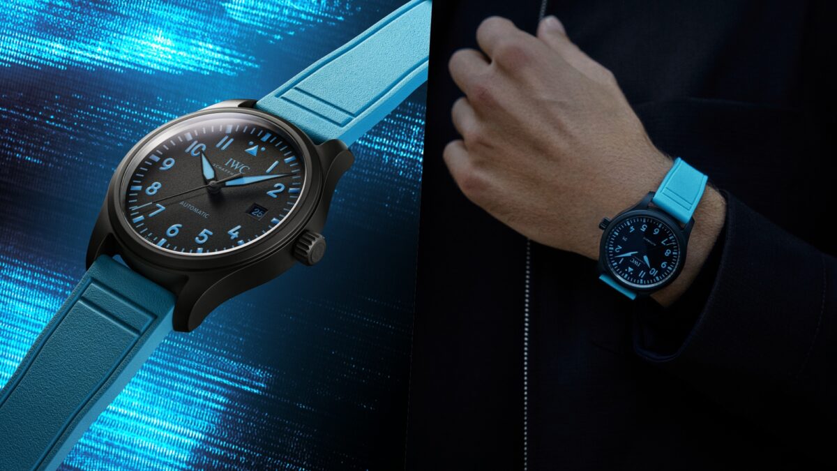 這次合作並非單純的聯名掛名,而是邀請George Russell參與設計過程,將自身創作理念與賽車生涯中的重要元素融入IWC經典的飛行員腕錶系列之中。兩款新作皆採用黑色氧化鋯陶瓷錶殼,搭配黑色錶盤與醒目的藍色印刷細節,藍色夜光塗層在暗處清晰可辨。