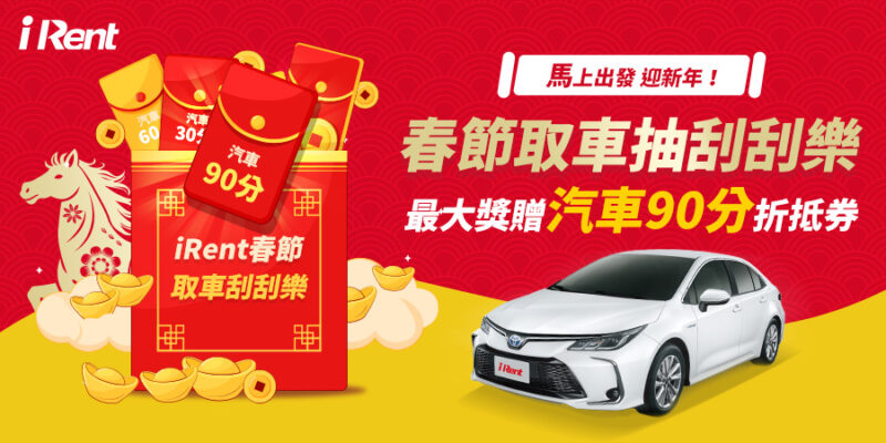 除了租越久、省越多,最高享整筆訂單9折優惠外,針對「訂閱制+」會員,加碼提供單日最高現折100元優惠外,也提供豐富新春禮包,輸入代碼即可獲得720分鐘汽車折抵券,此外,春節期間完成用車,每筆訂單均可參加線上「刮刮樂」抽獎活動,單單都有獎、中獎率100%,獎項包含汽車30分鐘、60分鐘、90分鐘折抵券。相關活動辦法以活動網頁說明為準。1月20日至2月22日,iRent加碼推出好友邀請活動,凡邀請好友加入iRent會員 (限完成會員審核),就有機會獲得限量實體周邊「iRent磁吸燈箱」!