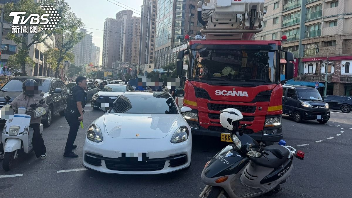 6千萬消防雲梯車右轉擦撞保時捷 無人受傷