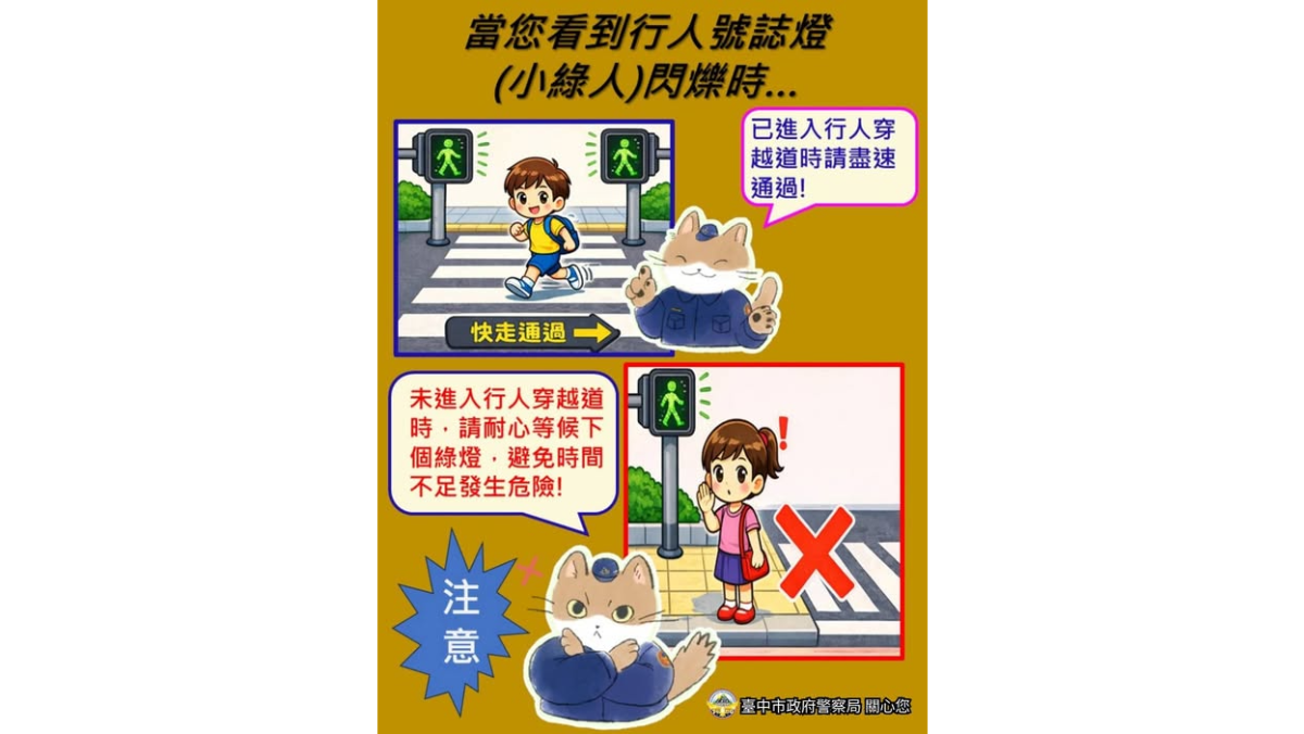 隨著修法預告期展開,這項交通新制最快預計於今年 (2026年) 4月上路。屆時,行人號誌的規則將變得更加人性化,顯示小綠人時,行人可依照正常節奏通行,當小綠人開始閃爍時,已在路口者應儘速通過,尚未進入者則改為建議性質的「避免跨入」。交通部強調,綠燈秒數設計足以讓民眾以正常速度走完全程,修法是為了保障高齡者與行動不便族群,避免他們因為擔心受罰而驚慌奔跑導致意外。