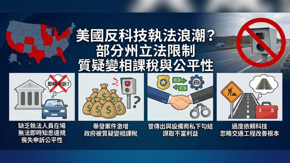 然而,這類自動化執法在國際上也引發不少爭議。以美國部分州為例,已立法限制科技執法的使用,原因在於缺乏警員現場攔檢,導致駕駛人無法即時得知違規事實,且申訴過程往往缺乏公平性。此外,國外也有觀點質疑這類設備可能演變成政府的變相課稅,甚至出現政府與設備商私下勾結的負面案例。因此有專家提醒,若過度依賴科技設備,恐會讓交通管理相關單位忽視更為核心的交通工程改善,陷入以罰代管的迷思。