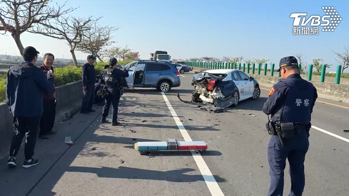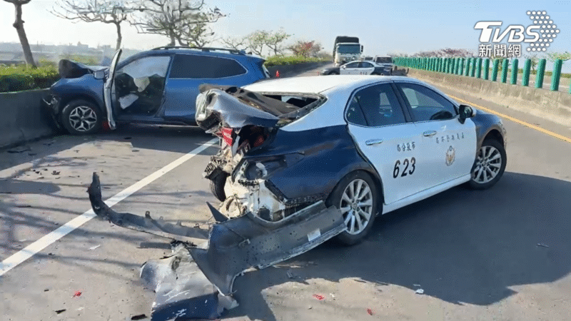 從現場畫面可見,警車車尾後車廂遭撞擊後嚴重凹陷,幾乎全毀變成廢鐵,車輛零件四散一地,地上還有閃爍的警示燈。肇事休旅車車頭同樣毀損嚴重,安全氣囊已彈出。36歲林姓肇事駕駛下車時幾度站不穩,隨後蹲在路肩不斷啜泣,顯然受到極大驚嚇,因肢體疼痛受輕傷送醫。