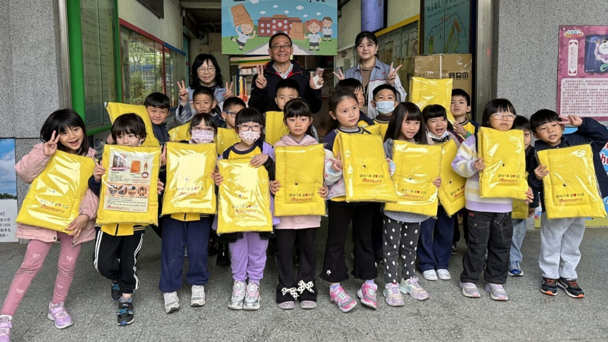 本次捐贈的防災頭套具備多項防護功能:具備耐受衝擊能力,可在地震時減少掉落物對頭部造成的傷害;雙手得以保持空出,更能協助應對突發狀況。外層使用防燃布料,可降低地震造成火災時,火舌對頸部與臉部的直接危害;鮮豔的黃色配色,加上名牌與求救口哨的設計,有助於提升辨識度並增加救援效率。平時也可作為午睡枕或椅背靠墊,讓孩童在日常生活中熟悉防災頭套的存在之外,每年的921防災演練日時,各校亦會實際演練穿戴防災頭套,培養孩子們在緊急時能迅速取用及應變的能力。