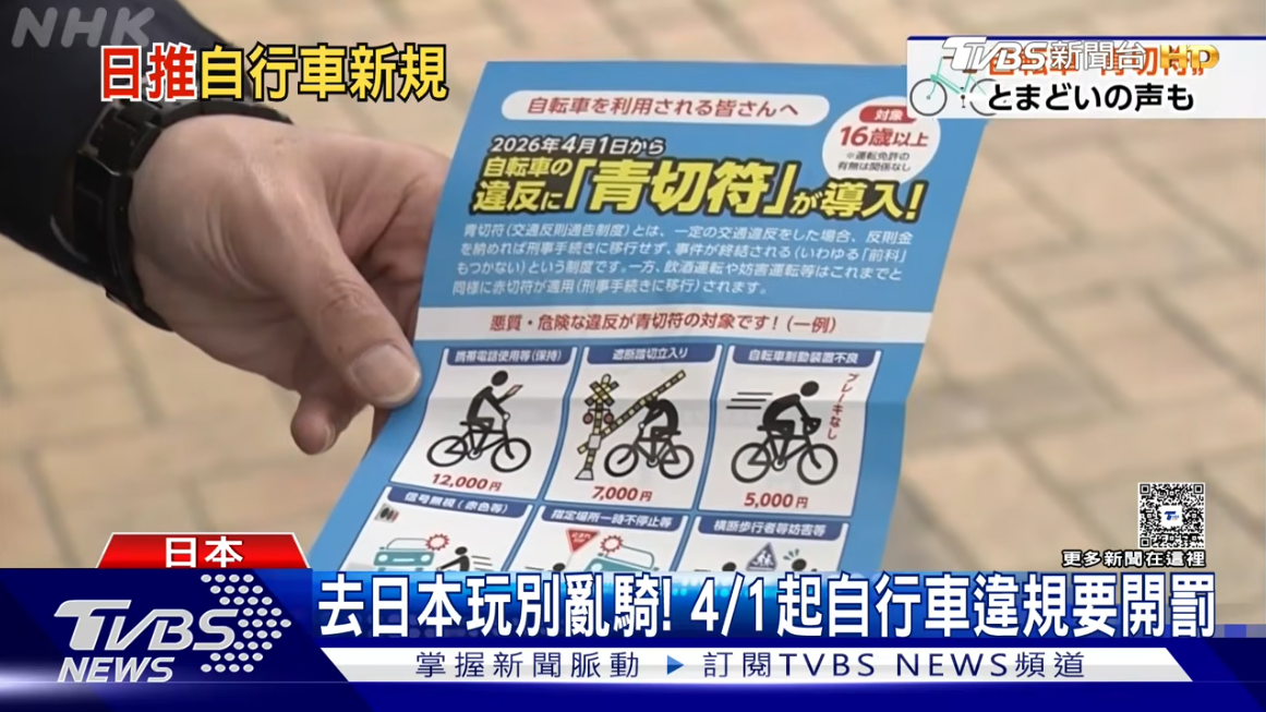 當悠閒地在日本街頭騎著腳踏車,微風徐徐吹來,彷彿化身日劇主角,但如果這時邊滑手機,下一秒恐怕收到一張藍色罰單!日本從今年4月1日起擴大實施交通法規,針對多達113項的單車違規行為進行開罰,值得注意的是,日本警察強調外國人也適用這套規則。因此,近期準備赴日旅遊、打算租借腳踏車代步的觀光客,上路前千萬得先做好功課以免荷包失血或敗興而歸。