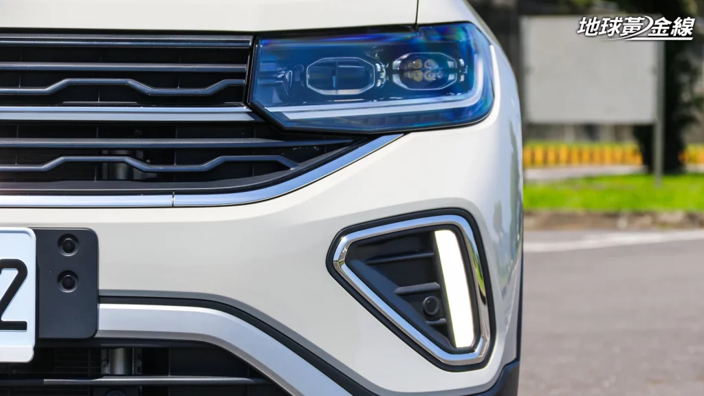 除設計元素調整,照明配備升級亦扮演為T-Cross帶來新扮相的關鍵。在這次試駕的230 TSI Style Design車型中不但配備有貫穿水箱護罩的燈條,讓晝行燈可以延伸至車頭正面,營造更具科技感與豪華感車頭模樣。前霧燈也改為與T-Roc R還有T-Roc R-Line車型相仿的直立式燈組設計,配合蜂巢網格狀水箱護罩格柵還有外八設計的前保桿線條,不僅創造新意,也帶來更多類似運動化車款的視覺意象。