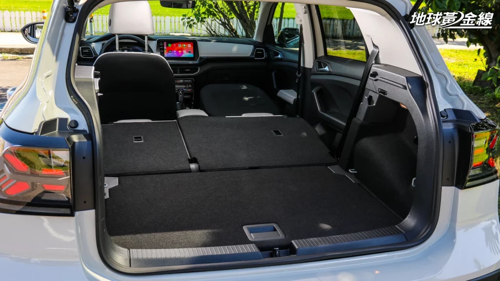 雖然T-Cross車長4,135mm、車寬1,784mm、車高1,573mm與軸距2,551mm尺碼相當迷你,在同級車款中也並非最大一款。但T-Cross甚至配備一般在中型SUV以上車款才會見到的後座滑移功能,幅度甚至高達14公分,期望滿足不同體型後座乘客需求,也進一步增加行李廂使用彈性。只是,T-Cross的後座滑移是整張後座座椅前後移動,並沒有分離移動機能,且T-Cross體型真的相當迷你,即使後座推至最底,以身高177公分的筆者而言,仍只能說是堪用,較適合應付短程移動。