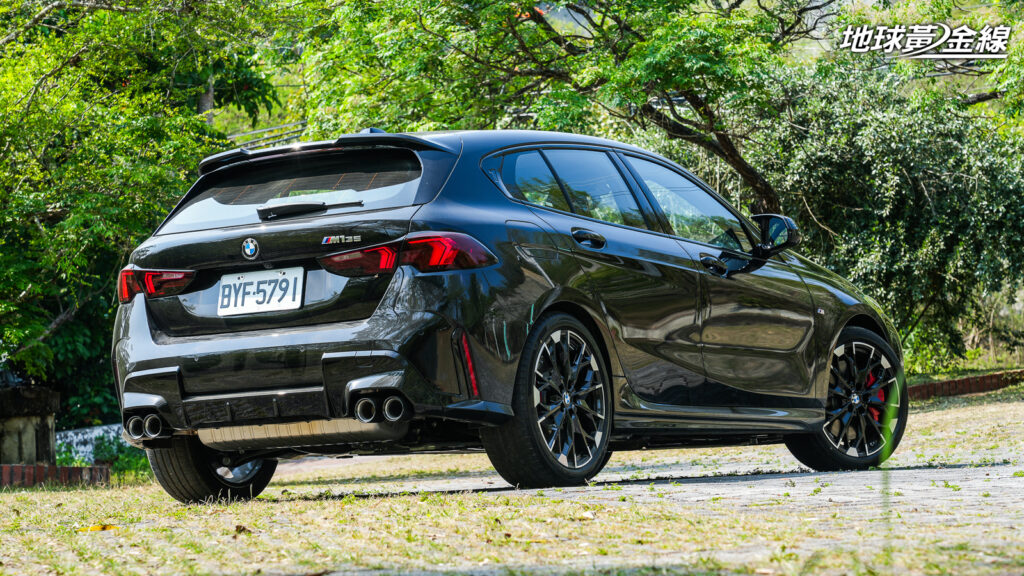 再搭配19吋M款雙色鋁合金輪圈、搭配紅色卡鉗的M款煞車套件,甚至是點綴有「1」字蝕刻的黑化窗框、M款空力後視鏡、M款空力側裙,再加上尺寸放大的M款空力尾翼,以及整合分流器設計的M款空力後保桿,還有BMW M家族車款特徵之一的四出尾管等,都讓M135 xDrive具備更濃郁的性能風格。而且,這樣的設計元素搭配下,更能夠把M135 xDrive拉回記憶中的BMW車款模樣,降低新世代設計語言對心底的衝擊感。