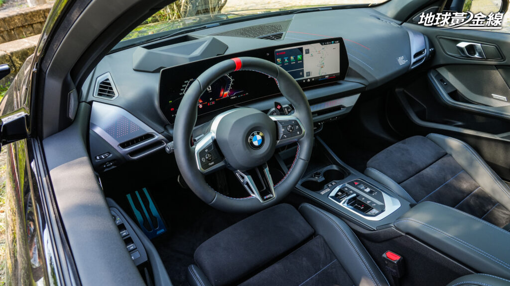 M135 xDrive車內同樣透過細節點綴強化戰鬥氛圍,而且,因為BMW早已針對F70世代1 Series車內設計進行大規模的年輕化,M135 xDrive甚至沒有進行大規模的調整,就能散發濃郁的性能感。相較先前試駕的120 M Sport,M135 xDrive僅透過方向盤樣式、換檔撥片,還有座椅、安全帶縫線等細節修改,就能夠讓M135 xDrive瀰漫濃烈的跑車化感受。