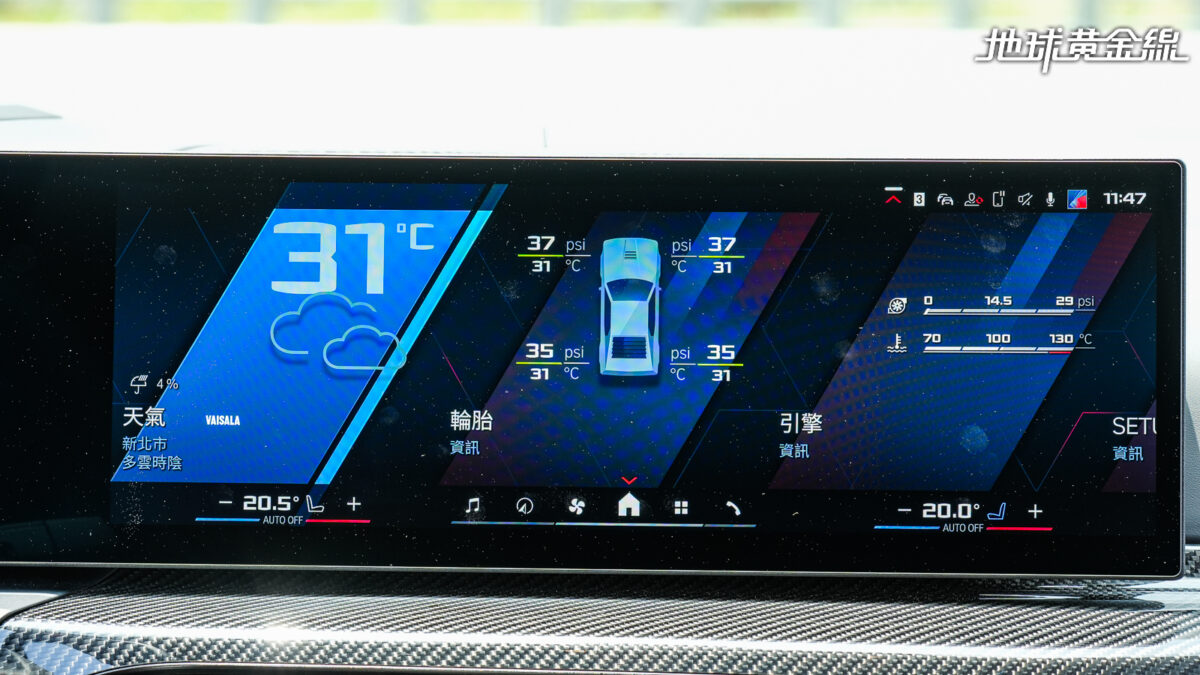 M3 Competition Touring車內則維持從2022年亮相以來一直散發的豪華性能氣息,大量導入碳纖維材質,包含儀錶台、中控台鞍座,甚至方向盤鑲嵌裝飾等,都運動碳纖維材質點綴,配合上空調出風口等處的銀色類金屬裝飾,還有鏡面黑色飾板,營造M3 Competition Touring的性能氛圍。而BMW總代理汎德提供的試駕車輛,則是選用了質感甚佳的駝色真皮搭配,包含車門內飾、儀錶台下半部,還有中央扶手、M款跑車化座椅等,都是駝色真皮,為這輛M3 Competition Touring保留豪華旅行車應有的細膩氛圍。