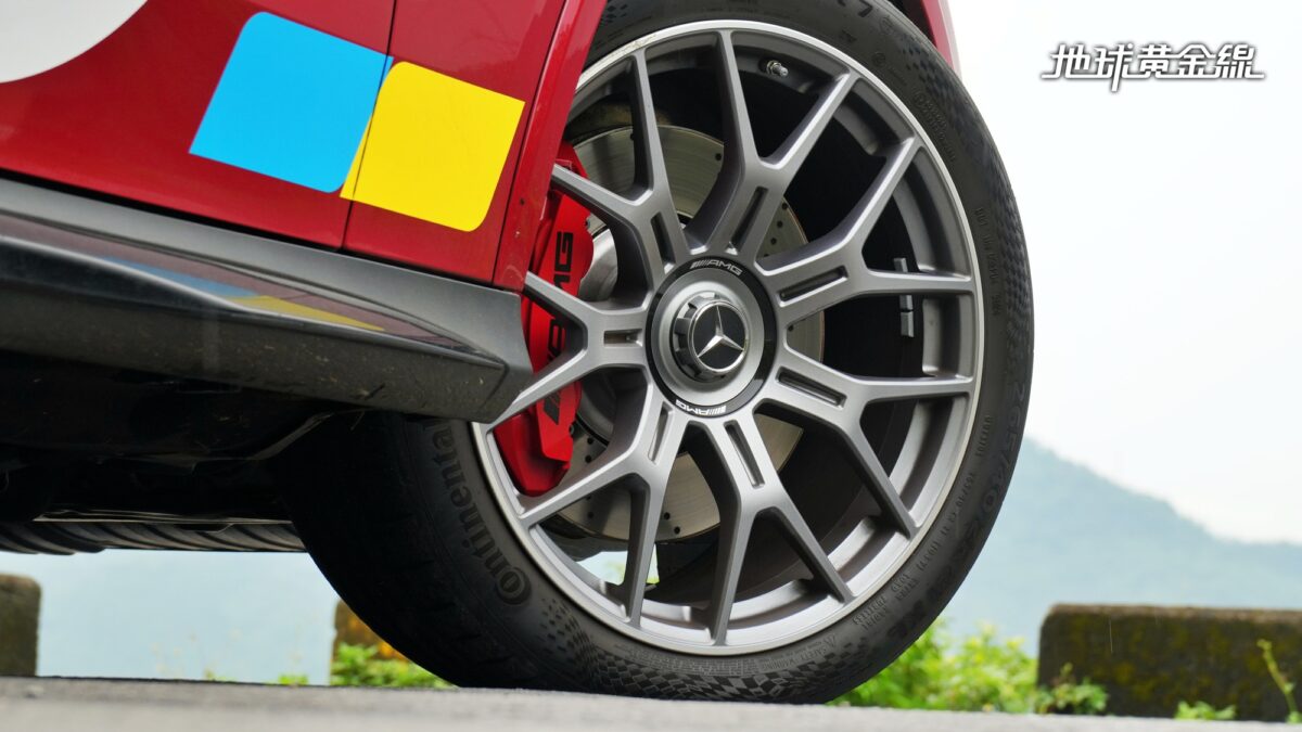 側面可以觀察到車上配備的21吋AMG專屬鋁圈,與車身比例相得益彰。四出尾管更是性能象徵,提醒旁人它絕非一般豪華休旅。車尾設計緊緻而充滿肌肉感,既有休旅的高度與寬闊,又帶有跑車般的俐落收尾。