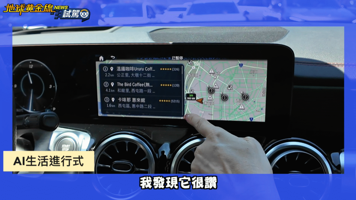 導航系統則是另一個亮點,EQB導入Google POI圖資,結合語音辨識,能用口語化的方式直接輸入目的地,例如「帶我去最近的咖啡廳」,系統就能立刻規劃路線。而當行駛至複雜路口時,擴增實境導航會在螢幕上以魚骨箭頭清楚指示方向,大幅降低錯過出口的可能。實際使用下來,這套系統比單純的地圖顯示更直覺,也更貼近現代駕駛習慣。