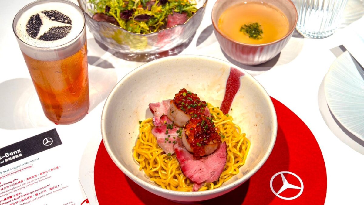 值得一提的是在這次試駕活動當中,台灣賓士還特別安排了與M-Benz品牌精神呼應的餐飲體驗。台灣賓士與台中潮流麵吧Glou Suru合作,推出期間限定的「星選擇套餐」。料理由台中「鳥苑 Torien Yakitori」主廚湯仲鴻(Tommy)與屏東「AKAME」主廚彭天恩(Alex)共同創作,再搭配「好吧 Goût Bar」調酒師張佳益(Elvis)設計的無酒精飲品組合,將「豪華」概念從車內延伸至餐桌。