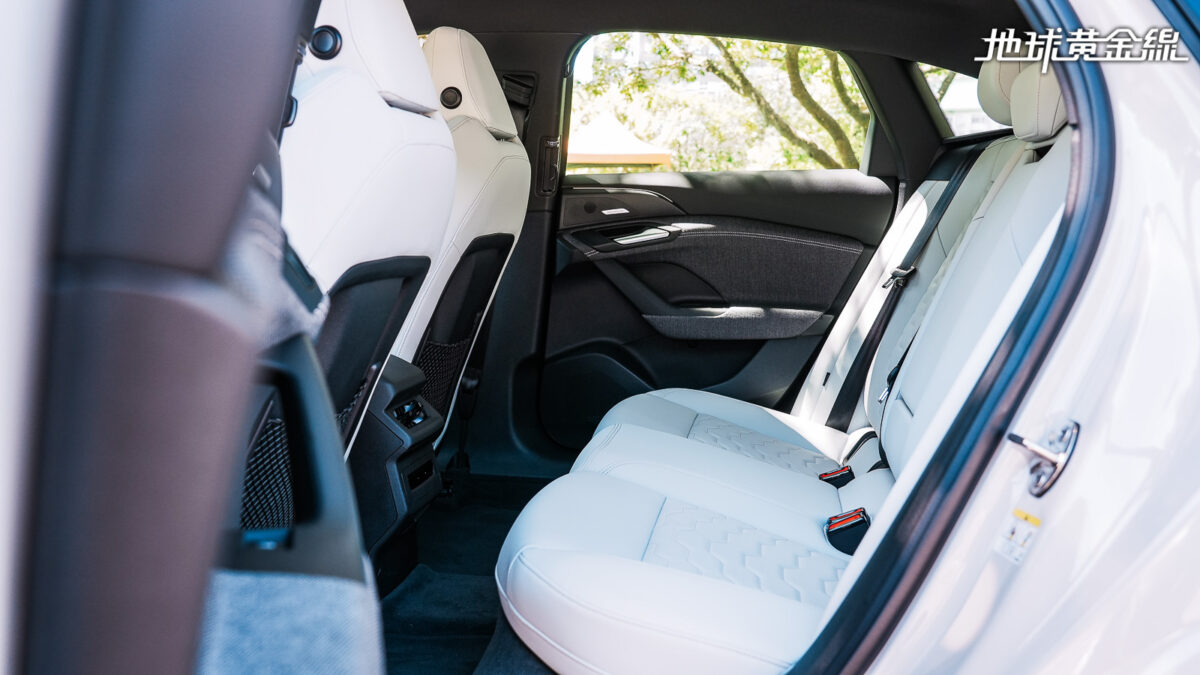 不過,為了更出色的風阻係數,以換取更優異的能源使用效率與續航里程。A6 Sportback e-tron犧牲的是後座的乘坐舒適度。由於將動力電池組安裝於前後軸間的車底,椅面距離車底的垂直高度相對較短,導致後座的大腿支撐性受到影響,以身高177公分的筆者而言,大腿幾乎處於懸空狀態,儘管後座的膝部空間相當出色,卻因為大腿缺乏椅面承托而大幅降低舒適性。同時,因為斜背輪廓關係,雖然試駕的A6 Sportback e-tron Performance配備有全景玻璃天窗,頭部壓迫感仍舊相對較高。