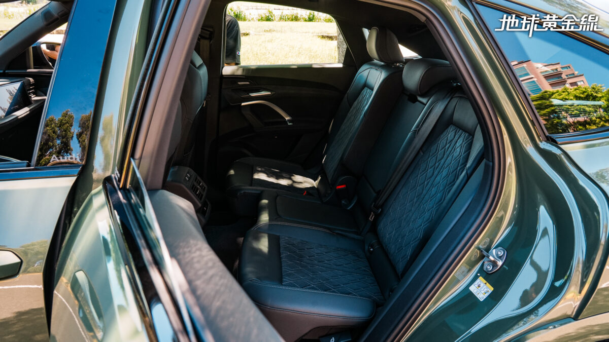儘管Q5 Sportback採用對於後座空間較不友善的斜背跑旅輪廓,且軸距並未因為世代更新而成長。事實上,Q5 Sportback後座乘坐空間卻沒有因此受到大幅影響,尤其是頭部空間,即使車頂在經過B柱後就大幅度下切,真正有感影響的,只有後窗視野。以身高177公分的筆者而言,頭部仍有大約一個手掌寬度,大約是4隻手指的頭部空間,膝部空間也超過2顆拳頭,再加上Q5 Sportback S line標配後座前後滑移功能,也能因應後座乘客體型需要調整空間,在更具個性化的造型設計中,依舊保有乘坐舒適度。