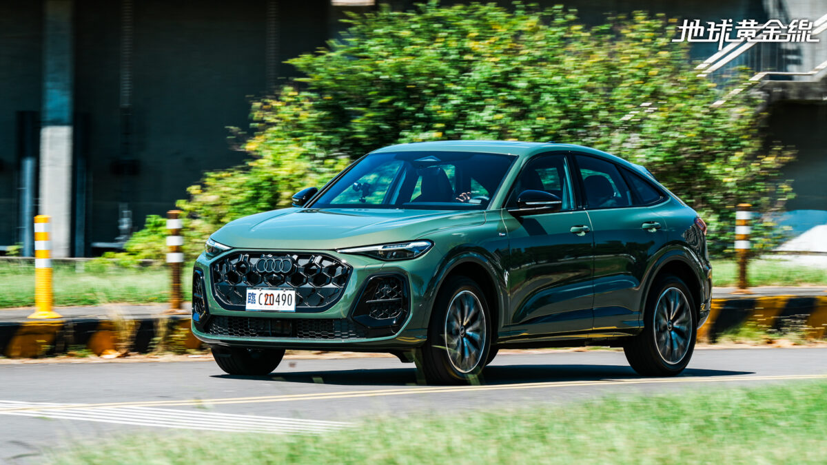 而且,Q5家族仍有輪廓較為方正、行李廂空間容積數字更出色的Q5 SUV可供選擇。Q5 Sportback更迷人的所在並非使用機能,而是斜背跑旅的美型設計。從先前試駕的A5 Sportback,可以發現Audi原廠設計師在PPC平台車款中習慣運用大面積的單體盾形水箱護罩,搭配兩側尺寸放大且整合垂直導流設計的氣壩造型,加上銳利的頭燈輪廓,營造更具侵略感與動感的面容氣息,Q5 Sportback也不例外,延續這樣的設計風格,為Q5 Sportback創造濃郁的家族辨識度。