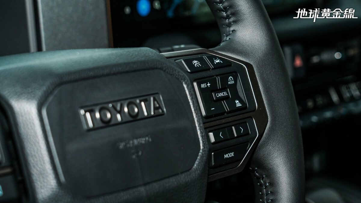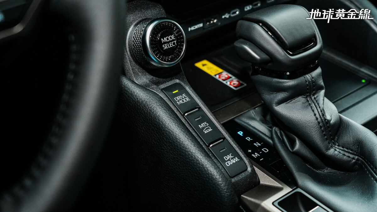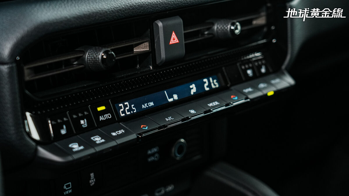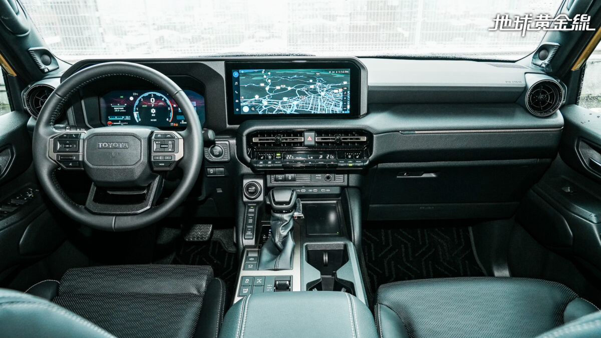 Land Cruiser座艙則是能夠同時滿足喜愛數位科技與傳統操作手感的買家,在井然有序的分層排列架構中,透過HUD抬頭顯示器、12.3吋全數位虛擬儀錶板、12.3吋中央多媒體資訊整合系統觸控式顯示幕,還有Qi無線充電座等,滿足現代買家所需的數位顯示介面與使用便利性。但在駕駛模式選擇、越野模式選擇、四驅模式選擇、中央差速器鎖定,還有空調系統控制面板等,都維持實體按鍵以及旋鈕設計,不但可以更直覺操作,當從事戶外活動帶著手套時,也不影響操作。
