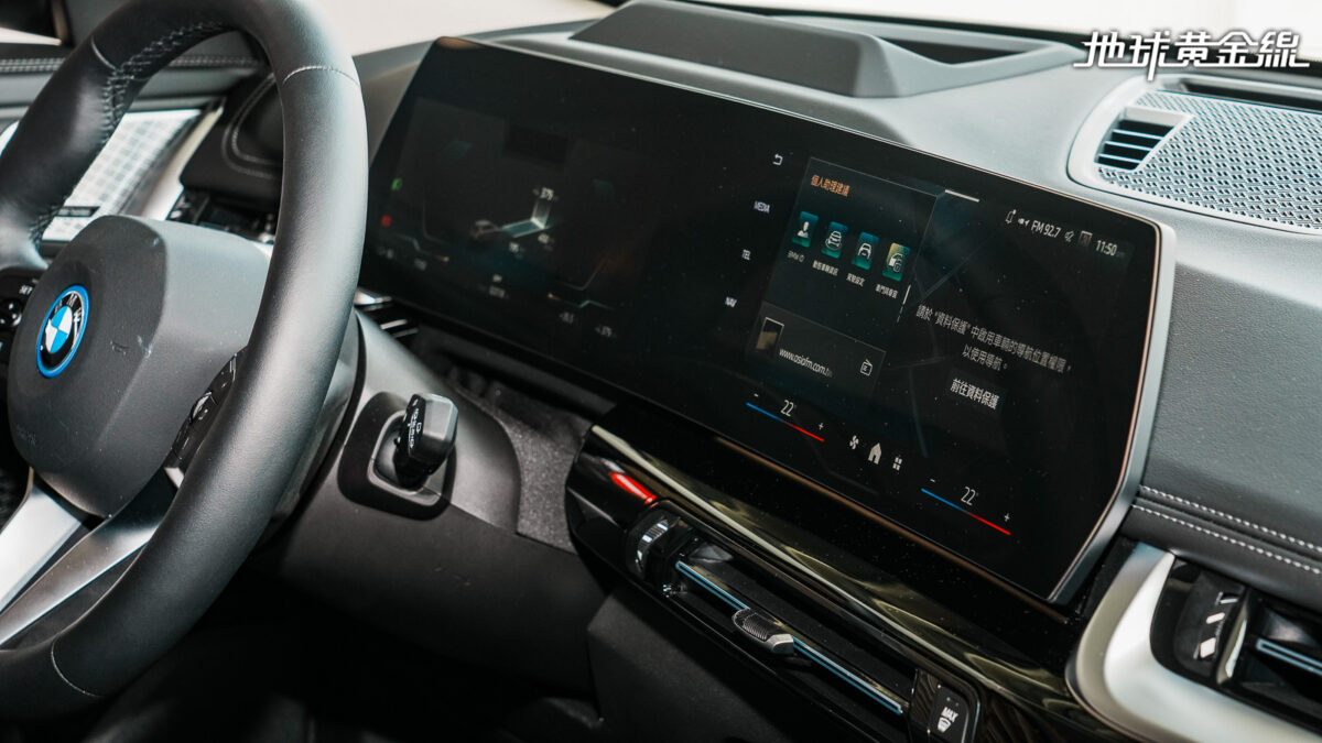 iX1 eDrive20 xLine車內同樣使用10.25吋全數位虛擬儀錶板與10.7吋BMW OS系統觸控式顯示幕組成懸浮式曲面螢幕介面,並沒有因為屬於入門車型等級有所調整,且直接標配BMW OS 9系統,具有更直覺的操作邏輯,同時提供包含無線Apple CarPlay與無線Android Auto智慧型手機連結,加上AR擴增實境導航、BMW進階數位服務、BMW手機智慧鑰匙2.0、BMW智慧語音助理2.0以及HUD抬頭顯示器等科技與聯網配備。