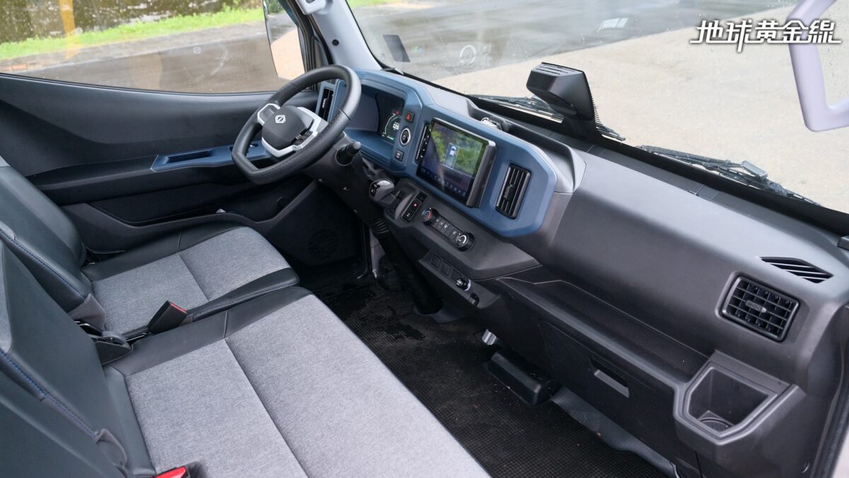 ET35搭載中華台亞生產的E-Axle一體式電驅後軸,包括MCU馬達控制元件、電動馬達、齒輪箱都整合在後軸,在單馬達後輪驅動的配置下可輸出162匹最大馬力、30.6公斤米最大扭力。雖然車重已經來到2.26噸,但靠著馬達輸出特性,踩下電門就能感受到瞬間衝出的力道,低速大扭力的表現跟柴油動力相比,可說是有過之而無不及。而且加速過程相當安靜,不會有吵雜的引擎聲浪,打開座椅下方的維修孔只有電機系統跟水箱,即使長時間乘坐,也不會有引擎溫度造成「座椅加熱」的困擾,舒適性明顯優於柴油貨車。