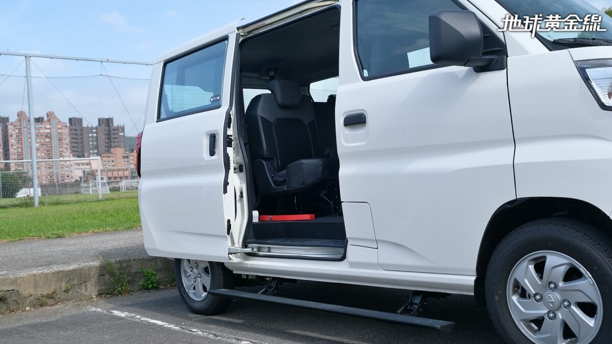 由於試駕車額外加裝了電動側滑門,因此只要扳動門把就能自動開啟或開閉,坐在車上的駕駛也能透過中控台開關控制,雖然目前只有上下車頻率比較高的右側能升級成電動側滑門,左側仍為手動控制,但因為有自動吸門功能,不用花太多力氣也能輕鬆關門。