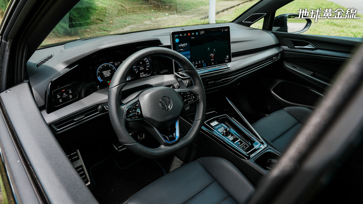 Golf R Black Edition車內同樣在Golf R Air基礎上進行配備升級,保留Golf R專屬,整合觸控按鍵的跑車化多功能方向盤、尺寸放大換檔撥片、金屬踏板組、黑化頂篷與跑車化座椅等運動化細節,甚至10.25吋全數位虛擬儀錶板與12吋中央觸控螢幕內也有R車型專屬顯示模式,原有濃烈的性能氛圍並未有折扣。甚至,還加入後窗深色玻璃等,增添後座隱私度同時,也能為外觀的黑化風格加分。