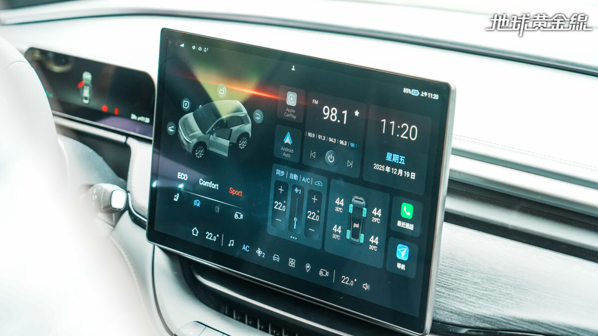 只不過,因為將空調出風口的實體控制介面取消,使用類似Porsche Taycan、Panamera的操作方式,必須透過車載主機內的空調介面操作風向或者單一出風口風量開關,若臨時需要調整會稍嫌複雜,且考驗鴻華先進對車載主機觸控面板順暢度的調校。但因為空調系統內建有自然掃風功能,風向會自動左右與上下調整,給予接近自然風的吹拂感受,避免長時間針對單一方向送風造成不適。