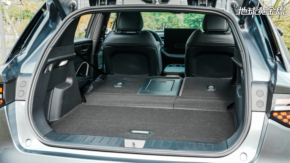 即便如此,鴻華先進仍利用現有的轟炸機廠徽做出變化,將尾門開關整合在車尾廠徽中,只要扳動車尾的廠徽就能開啟尾門,Bria Emerge等級以上更配備具接近感應開啟電動尾門,進一步升級便利性。且內部除了320公升基礎容積外,還可透過後座椅背6/4分離傾倒功能擴充至1,043公升,且底部相當平整,甚至可以應對車宿需求。同時,下方還有隱藏式收納空間,搭配車頭52公升Frunk前置物艙,給予不俗的使用機能彈性。只是,感應式電動尾門使用初期需要摸索一下感應的時間與距離,若能同時兼容腳踢感應功能,使用上或許更為直覺。
